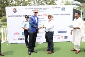 For the last 5 years, Rostron Carlyle has sponsored the Goodwill Cup, a cricket match between the Queensland Police Services and an invitation team for the Institute for Australia India Engagement comprising a multicultural mix of players, both men and women. The IAIE team was fortunate to have board member Matthew Hayden open the batting. It was a very close game, but the IAIE team won.